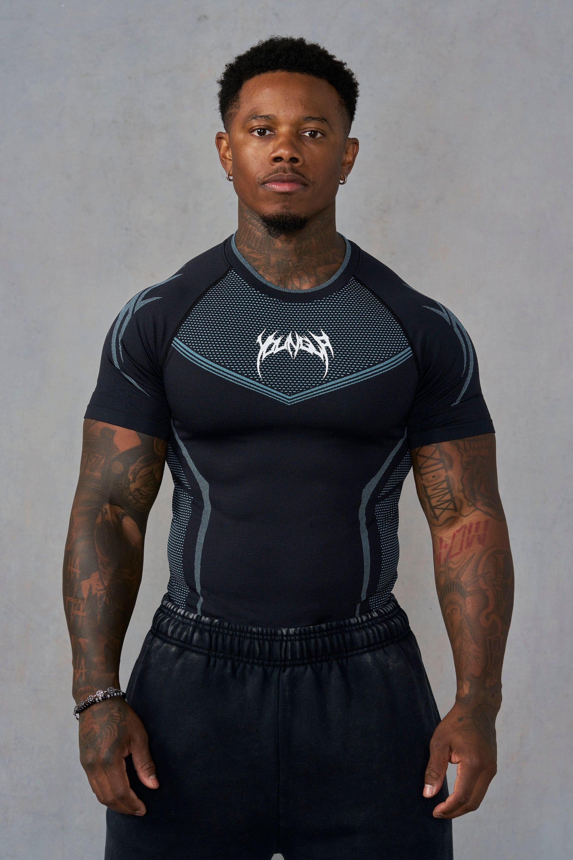 DESIGN: The Warrior X Tee delivers performance with an edge, built with the same elite fit and premium fabric as our best-selling Super Villain Tees. Tribal-inspired shoulder detailing and a bold high-density chest hit give it a striking look, while the artwork is placed to broaden the shoulders and visually taper the waist — sharpening that V-tapered silhouette.